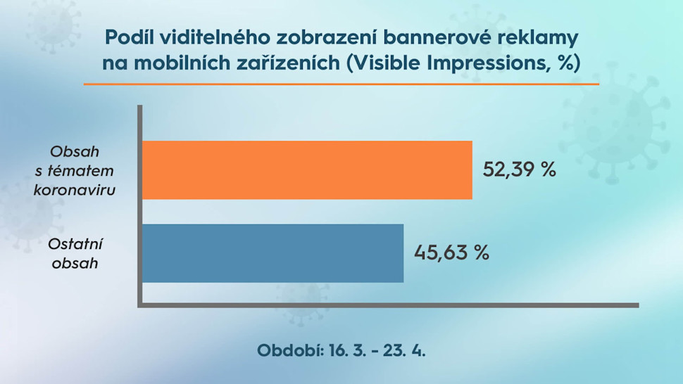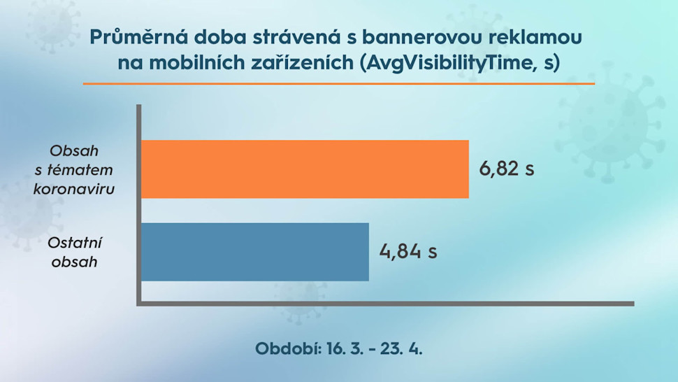 Na mobilních zařízeních jsme zaznamenali rozdíl ještě výraznější. Viditelnost reklamy zobrazené například u článků zpravodajských webů informujících o koronaviru byla dokonce o 15 procent vyšší, čas strávený s reklamou byl o více než 40 procent delší a míra prokliku o vyšší o 112 procent.