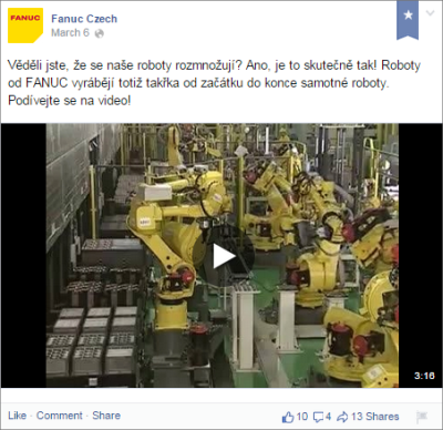 Podívejte se, jak lze spravovat facebookovou stránku B2B pro náročnou oblast průmyslové automatizace a robotiky na námi vedeném profilu společnosti FANUC Czech.